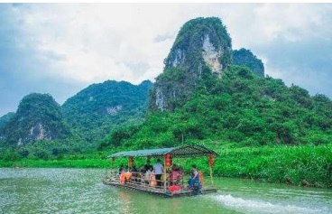 10: 00 乘坐【竹筏漂游】,澈碧绿的黄花溪,穿行于如画的卡斯特地貌群(峰林)之中,两岸是常年郁郁葱葱竹林、草木及悦目的田野。每天清晨溪面上映照淳朴的村姑们洗衣时婀娜的身影,一群群鸭鹅在鸣唱着畅泳,艄公一把竹杆,撑起的是一片恬静的田园风味。游客乘坐竹筏在黄花溪上顺流而下,沉浸在这样的天人合一的美景之中,喧嚣的都市生活早已被抛到九霄云外。